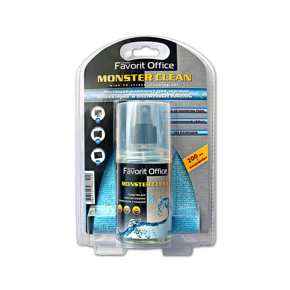 F134014 "FAVORIT OFFICE" Media Clean. Чистящий комплект для экранов телевизоров и плазменных папанелей. Гель 200мл + микрофибра 25x25 (блистер)