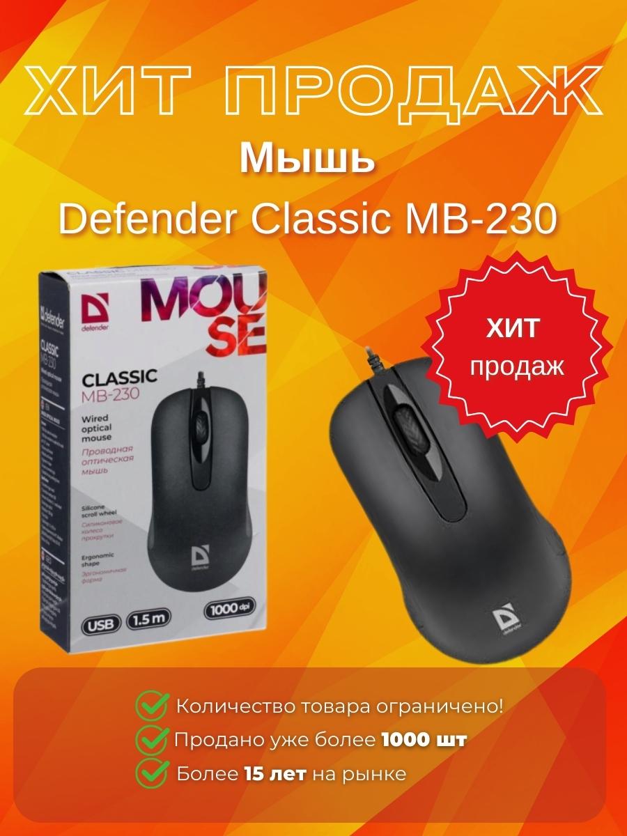 КупитьМышь Defender Classic MB-230 ( Черный ), USB 4кн, 1кл-кн, коробочка для компьютерной техники | Доставка по Алматы и всему Казахстану | Рассрочка 0-0-24